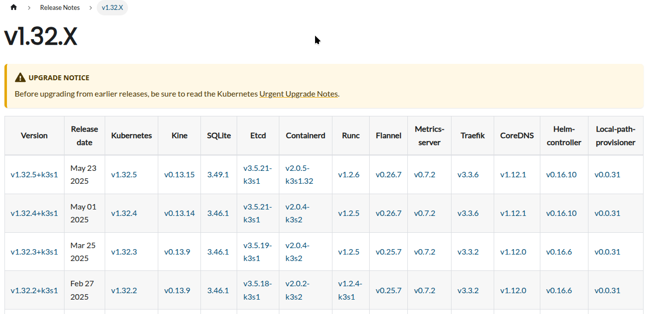 詳細的內置組件列表和版本信息,可以參考 K3s 的 Release Note。